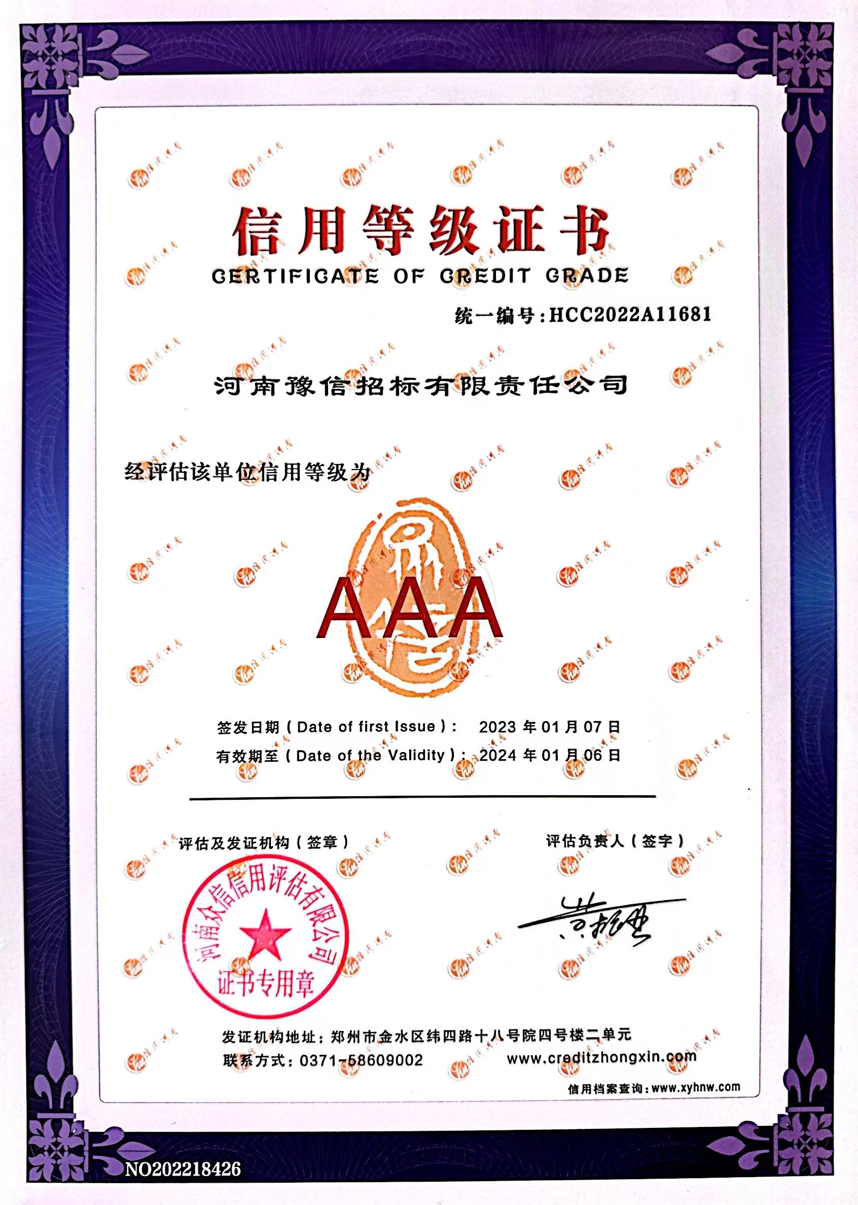 2022年度鄭州市招標代理機構(gòu) AAA 級企業(yè) -