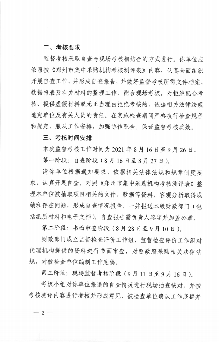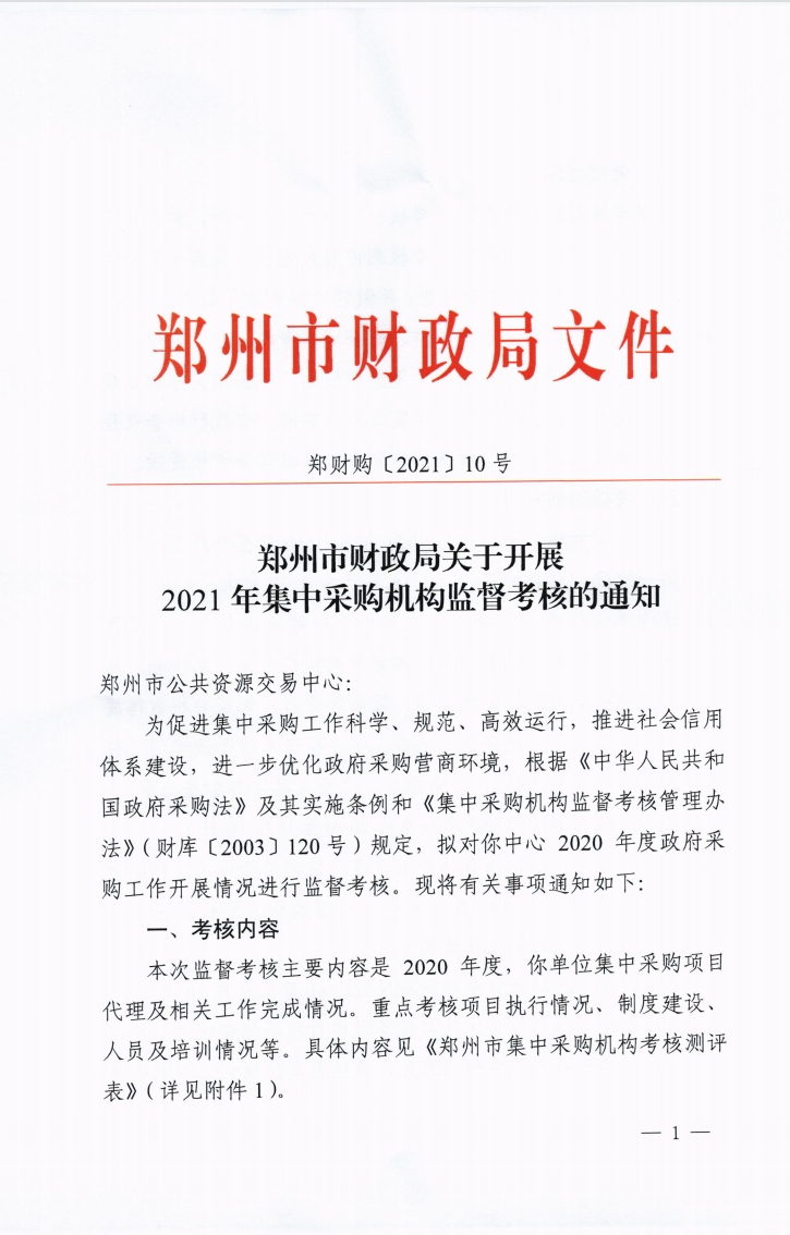 鄭州市財政局 關(guān)于開展2021年集中采購機(jī)構(gòu)監(jiān)督考核的通知