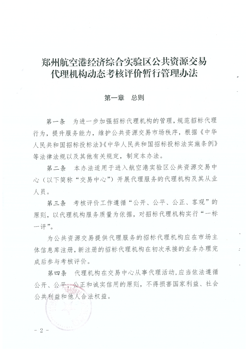 鄭州航空港經(jīng)濟(jì)綜合實(shí)驗區(qū)公共資源交易代理機(jī)構(gòu)動態(tài)考核評價暫行管理辦法