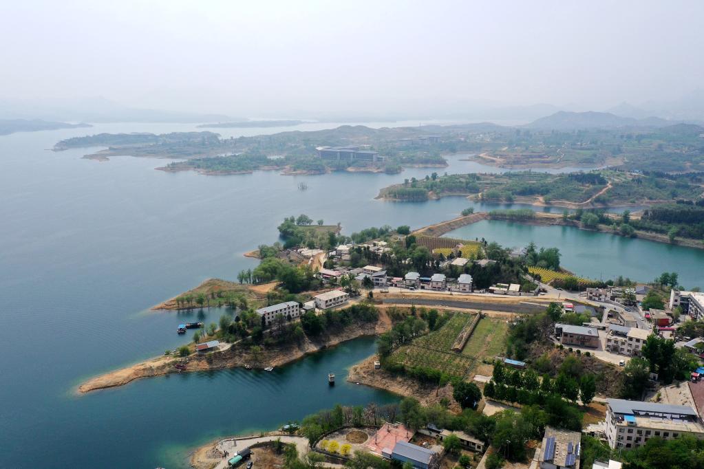 這是426日拍攝的崗南水庫(無人機照片)。新華社記者朱旭東攝