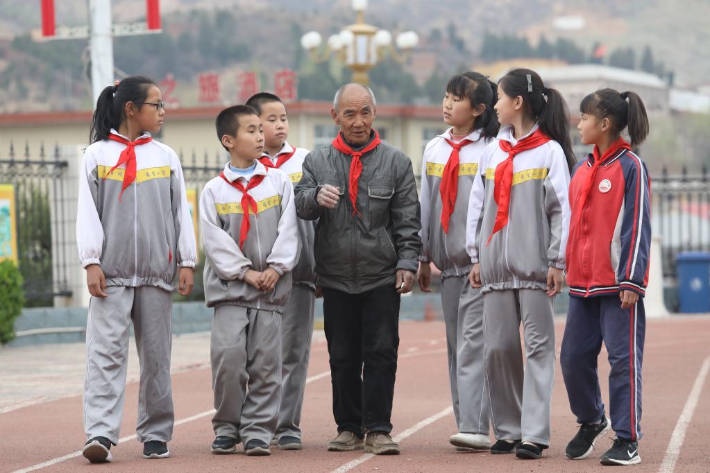 閆青海(中)給孩子們講奮斗創(chuàng)業(yè)的故事(201948日攝)。新華社發(fā)