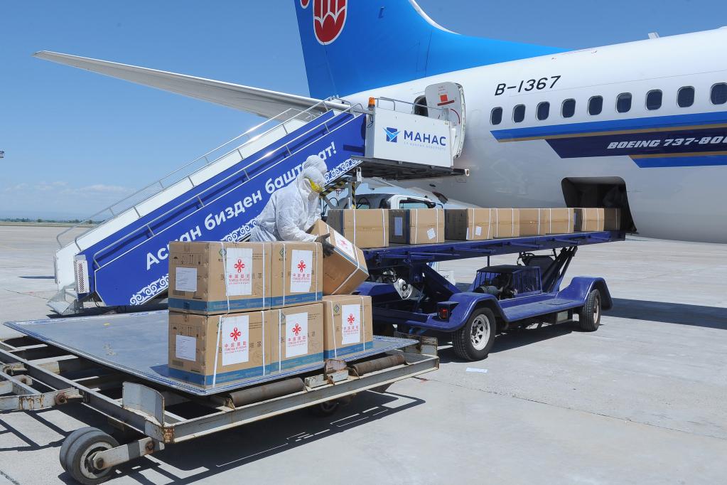 2020511日,在吉爾吉斯斯坦首都比什凱克,中國(guó)政府第二批援吉抗疫醫(yī)療防護(hù)物資抵達(dá)瑪納斯國(guó)際機(jī)場(chǎng)。新華社發(fā)(吉爾吉斯斯坦政府新聞局供圖)
