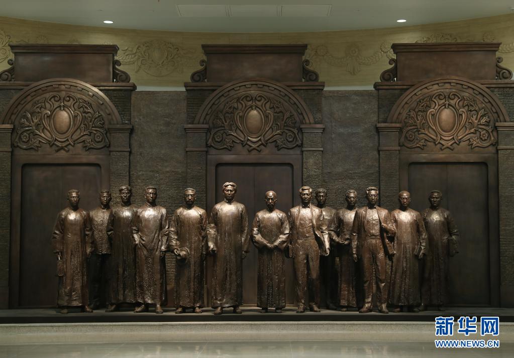 61日拍攝的中共一大紀(jì)念館內(nèi)的一大代表群體銅像。新華社記者 劉穎 攝