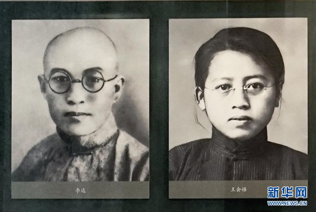 中共二大會(huì)址紀(jì)念館展示的李達(dá)、王會(huì)悟夫婦的照片。新華社發(fā)