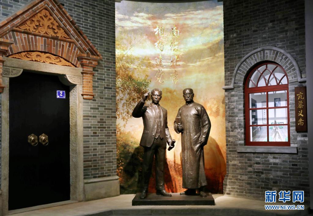 61日拍攝的中共一大紀(jì)念館內(nèi)的南陳北李,相約建黨主題雕塑。新華社記者 劉穎 攝