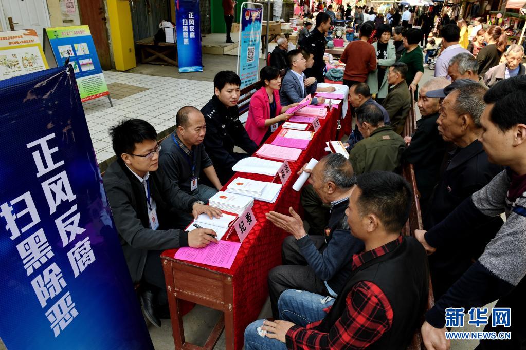 2020年1月6日,福建省福州市永泰縣公安干警在掃黑除惡專項斗爭宣傳活動上向群眾介紹專項斗爭成果。新華社記者 張國俊 攝