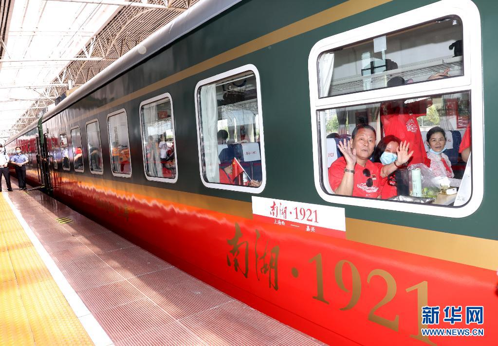 2021年6月25日,乘坐Y701次“上海至嘉興紅色旅游列車”的旅客在鐵路上海西站準(zhǔn)備出發(fā)。這是一趟紅色教育主題列車,連接起上海中共一大會(huì)址與嘉興南湖。新華社記者 陳飛 攝