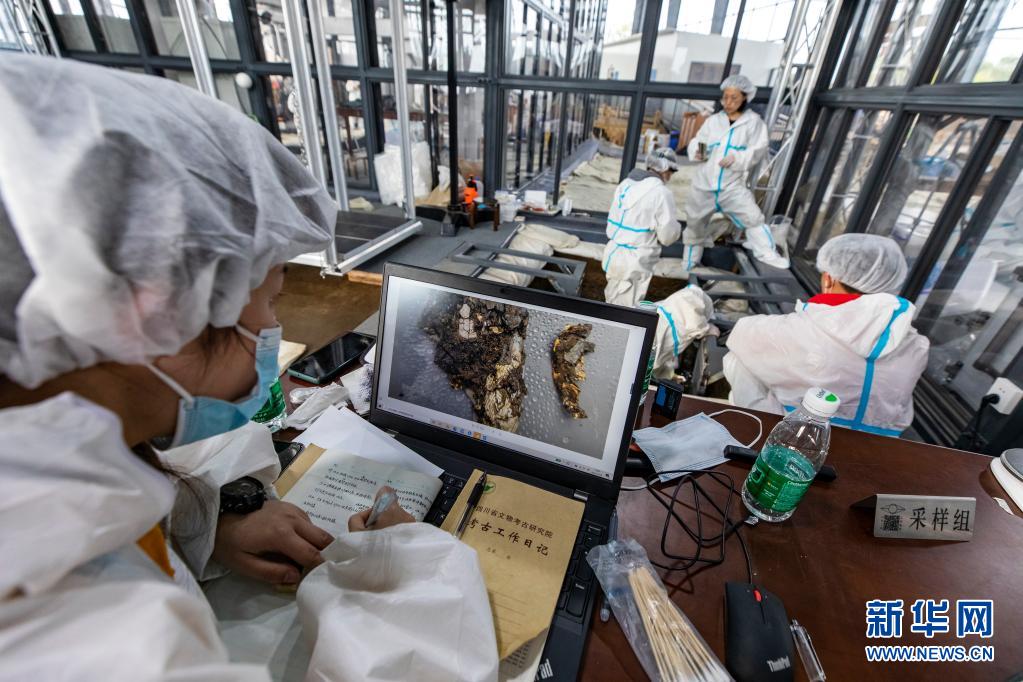 2021年3月10日,在三星堆遺址考古發(fā)掘現(xiàn)場(chǎng),考古人員利用電腦現(xiàn)場(chǎng)查看新發(fā)現(xiàn)的象牙雕,并進(jìn)行記錄。新華社記者 沈伯韓 攝