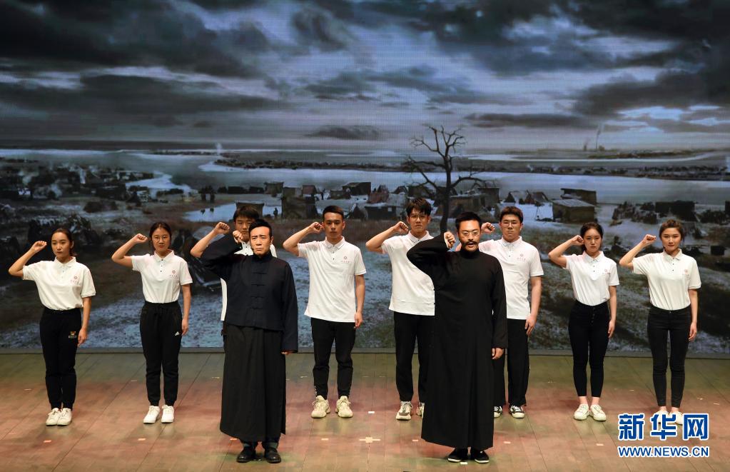 電視劇《覺醒年代》主創(chuàng)團隊走進北京大學,劇中主要演員與北大學生同臺演出(420日攝)。新華社記者 任超 攝