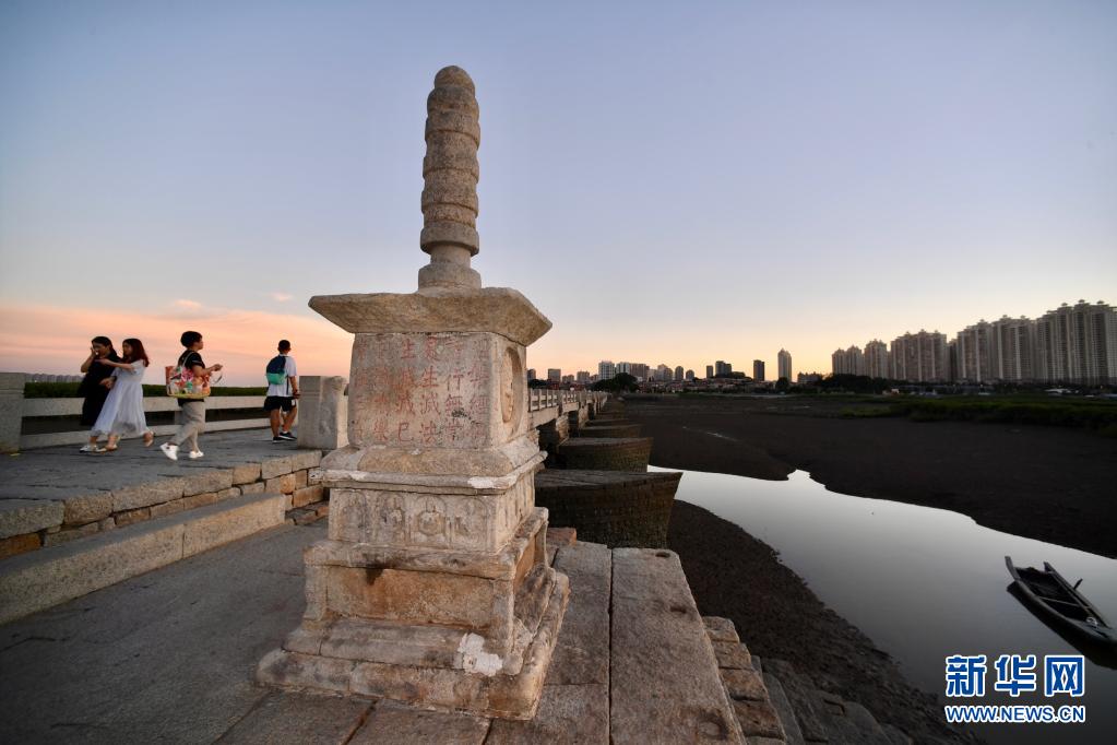 游人在傍晚時(shí)分游覽泉州洛陽橋(7月7日攝)。新華社記者 姜克紅 攝