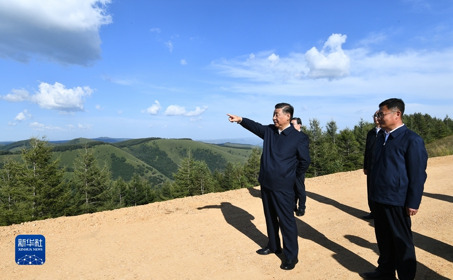 8月23日至24日,中共中央總書記、國(guó)家主席、中央軍委主席習(xí)近平在河北省承德市考察。這是23日下午,習(xí)近平在塞罕壩機(jī)械林場(chǎng)月亮山考察。新華社記者 謝環(huán)馳 攝