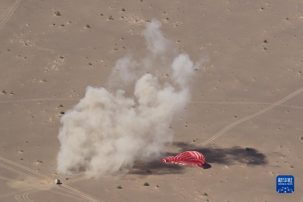 13時(shí)34分,返回艙在預(yù)定區(qū)域著陸,落點(diǎn)近乎完美。