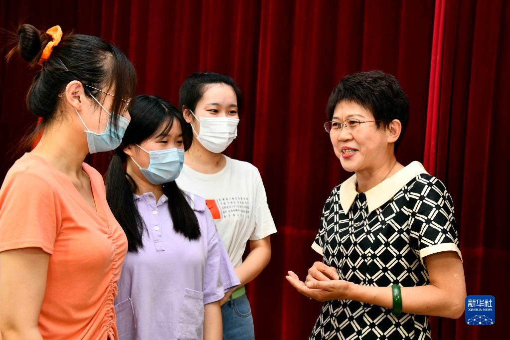 在山東濰坊學院法學院,全國人大代表高明芹(右一)在宣講民法典相關內(nèi)容(2020年6月16日攝)。新華社記者 郭緒雷 攝