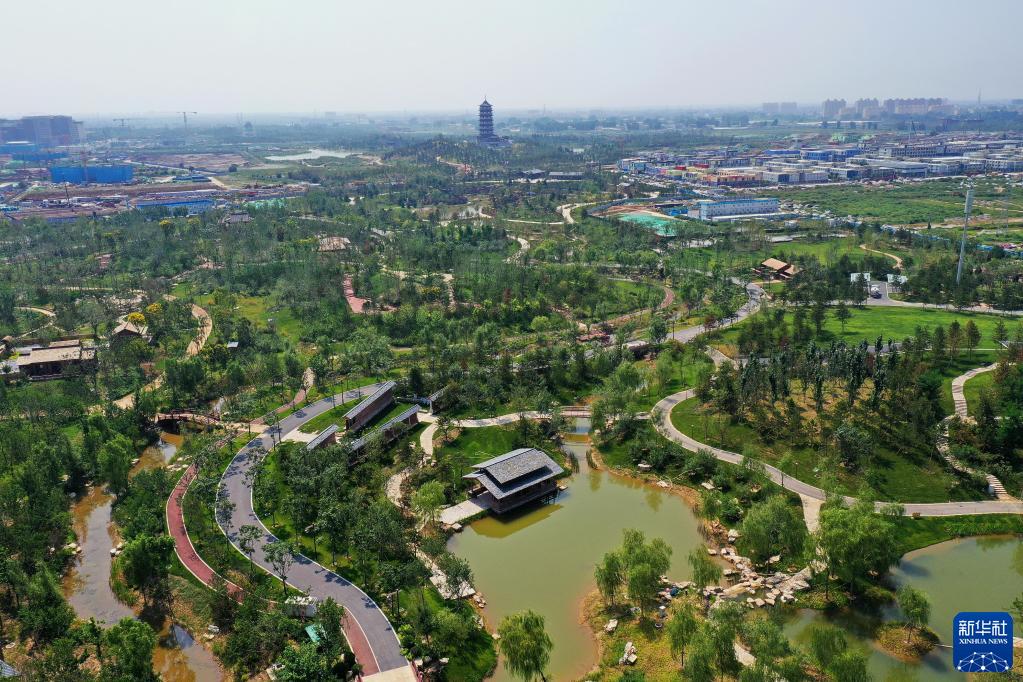 這是雄安新區(qū)悅容公園北苑內(nèi)的景色(9月1日攝,無人機照片)。新華社記者 牟宇 攝