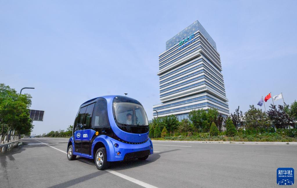 一輛無人駕駛汽車在京津中關村科技城內(nèi)部道路進行道路測試(5月19日攝)。新華社記者 孫凡越 攝