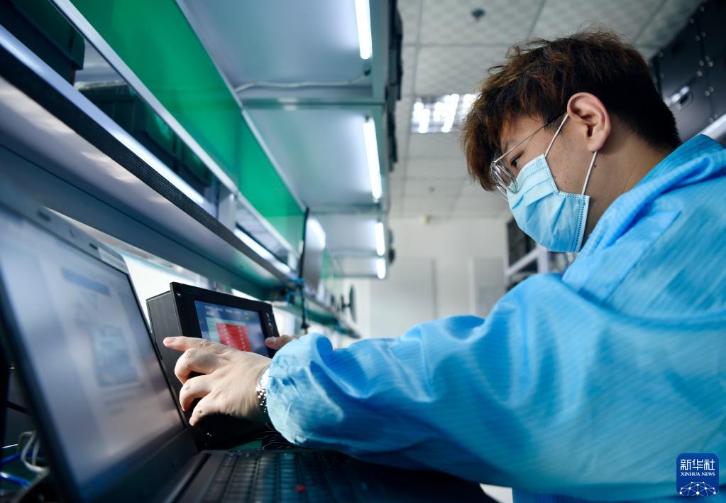 在京津中關村科技城,天津新松智能科技有限公司的員工在調(diào)試設備(2020年12月28日攝)。新華社記者 李然 攝
