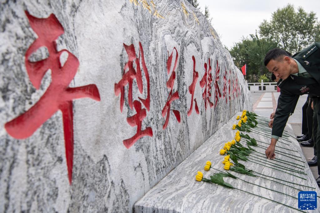2020年9月25日,在位于山西省大同市靈丘縣的平型關(guān)大捷紀(jì)念館,工作人員向革命先烈獻(xiàn)花。新華社記者 楊晨光 攝