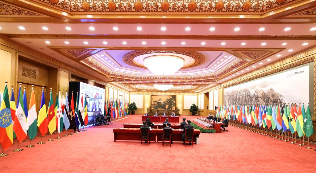 “志合者,不以山海為遠”。29日晚,北京人民大會堂東大廳內(nèi),中國和53個非洲國家國旗以及非洲聯(lián)盟旗幟并排矗立、恢弘大氣,雖是“云端”相聚,但現(xiàn)場洋溢著濃濃情誼,昭示著中非歷久彌堅的友好關(guān)系。