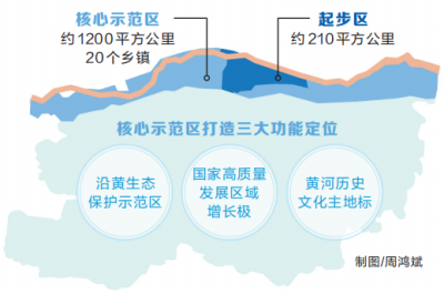《規(guī)劃》明確了核心示范區(qū)打造沿黃生態(tài)保護(hù)示范區(qū)、國(guó)家高質(zhì)量發(fā)展區(qū)域增長(zhǎng)極、黃河歷史文化主地標(biāo)的三大功能定位和建設(shè)成為大保護(hù)大治理展示窗口、新理念新場(chǎng)景展示窗口和華夏源黃河魂展示窗口的發(fā)展定位。