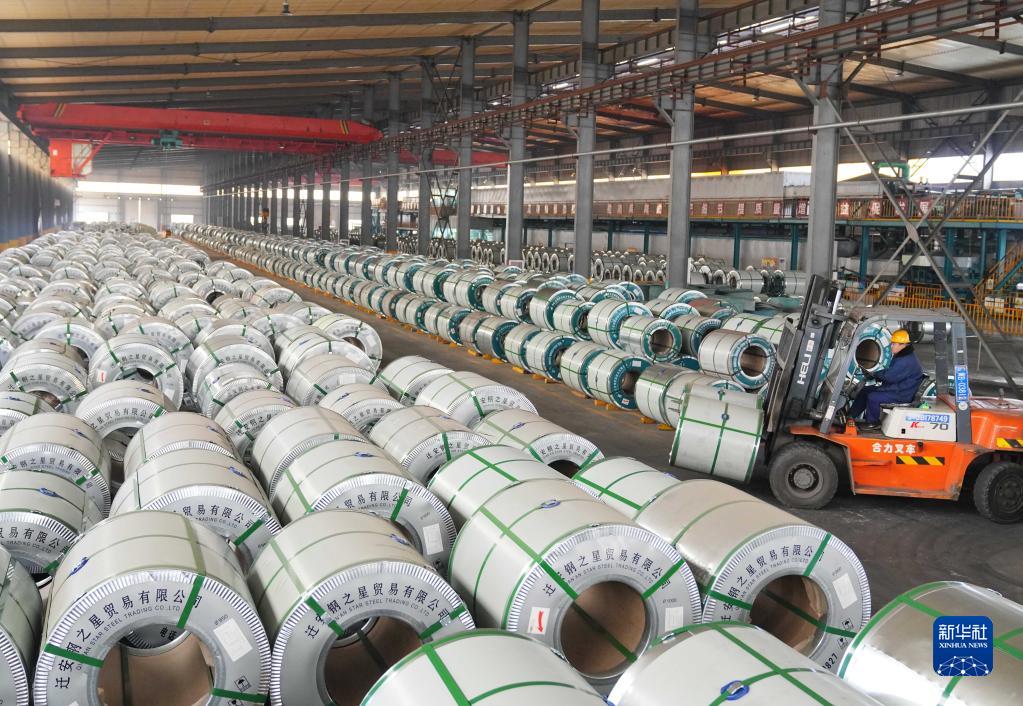 河北省鋼鐵重鎮(zhèn)遷安市一家彩涂鋼板企業(yè)的工人在生產(chǎn)車間工作(12月11日攝)。新華社記者 楊世堯 攝