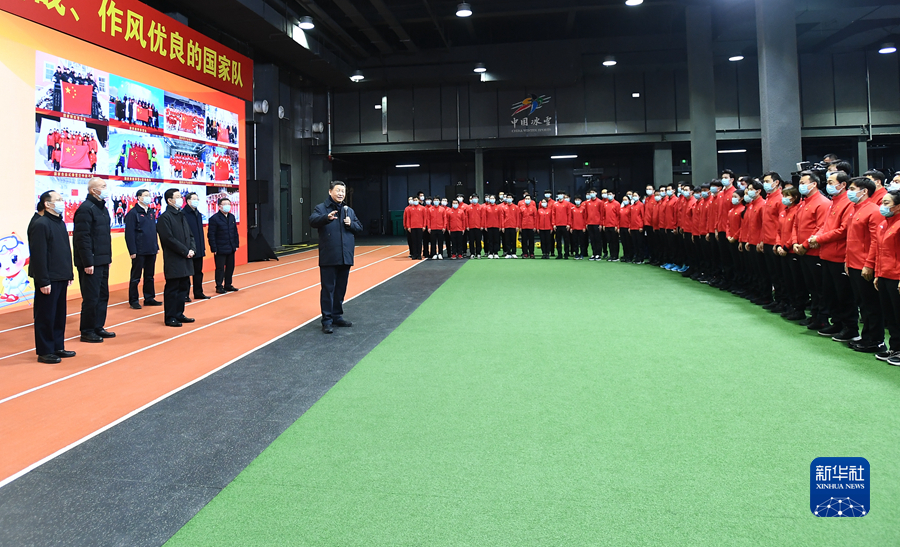 1月4日,中共中央總書(shū)記、國(guó)家主席、中央軍委主席習(xí)近平在北京考察2022年冬奧會(huì)、冬殘奧會(huì)籌辦備賽工作。這是4日下午,習(xí)近平在二七廠冰雪項(xiàng)目訓(xùn)練基地速滑館,向參訓(xùn)運(yùn)動(dòng)員、教練員表示慰問(wèn)。新華社記者 謝環(huán)馳 攝