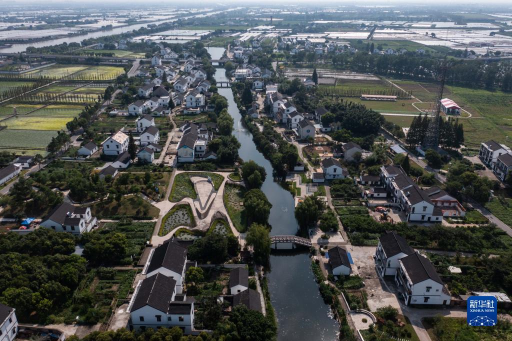 空中俯瞰浙江省嘉興市嘉善縣姚莊鎮(zhèn)橫港村(2021年7月12日攝,無(wú)人機(jī)照片)。近年來(lái),嘉善縣建設(shè)高標(biāo)準(zhǔn)農(nóng)田14.8萬(wàn)畝;同時(shí)建設(shè)產(chǎn)業(yè)幫扶聯(lián)合體、農(nóng)業(yè)社會(huì)化服務(wù)綜合體等,不斷拓寬農(nóng)民增收致富渠道,走出了一條城鄉(xiāng)深度融合推動(dòng)共同富裕的實(shí)踐路子。新華社記者 徐昱 攝