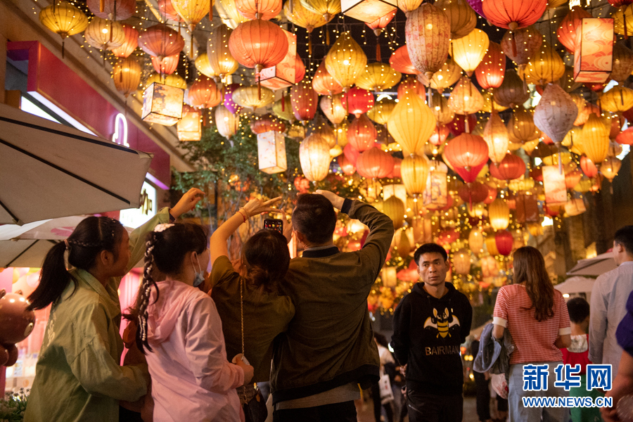 位于重慶市南岸區(qū)的彈子石老街利用燈飾豐富夜間消費(fèi)體驗(yàn)。(2021年6月28日攝)新華網(wǎng) 耿駿宇 攝
