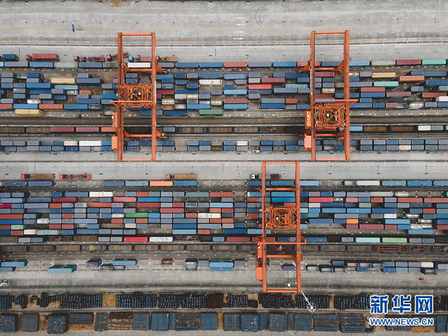 無人機(jī)視角下的中歐班列(成渝)發(fā)車地——重慶團(tuán)結(jié)村站。(2020年8月5日攝)新華網(wǎng) 耿駿宇 攝