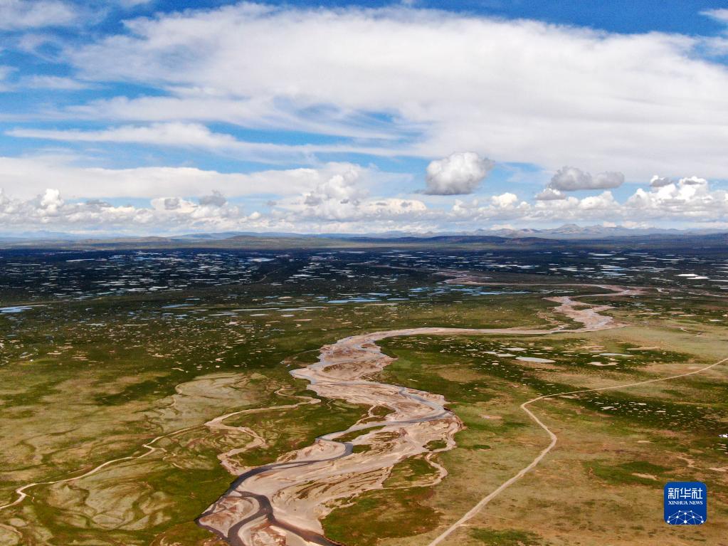 這是2021年7月23日拍攝的長(zhǎng)江南源當(dāng)曲(無人機(jī)照片)。新華社記者 張龍 攝