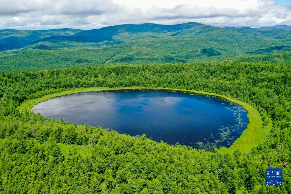 這是內(nèi)蒙古阿爾山國(guó)家森林公園內(nèi)的天池(2021年7月14日攝,無人機(jī)照片)。新華社記者 連振 攝