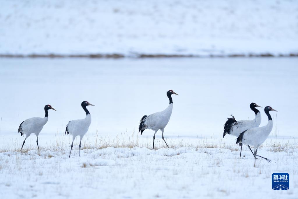 2021年10月21日在三江源國(guó)家公園黃河源園區(qū)內(nèi)拍攝的黑頸鶴。新華社記者 張龍 攝