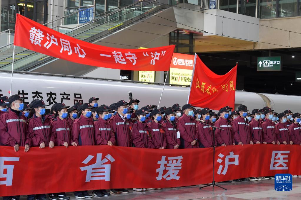 4月3日,江西省援滬醫(yī)療隊(duì)從南昌出發(fā),馳援上海抗擊疫情。新華社記者 彭昭之 攝