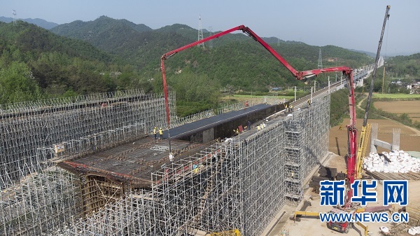 “此次一次性澆筑的混凝土約1100噸,由于澆筑過程時(shí)間長,技術(shù)人員須嚴(yán)格按照技術(shù)交底指導(dǎo)現(xiàn)場施工,認(rèn)真落實(shí)安全質(zhì)量責(zé)任制,重點(diǎn)對澆筑速度、混凝土質(zhì)量以及澆筑過程中模板變形情況進(jìn)行監(jiān)控,確保澆筑順利完成?!敝需F四局澠淅高速跨浩吉立交項(xiàng)目負(fù)責(zé)人說。