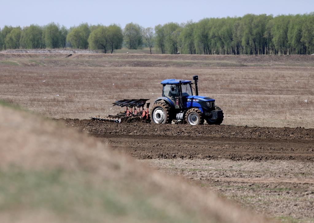 2022年4月22日,在遼寧省臺(tái)安縣達(dá)牛鎮(zhèn)十四家子村大豆基地,農(nóng)機(jī)手駕駛農(nóng)機(jī)對農(nóng)田進(jìn)行翻耕。新華社記者 姚劍鋒 攝