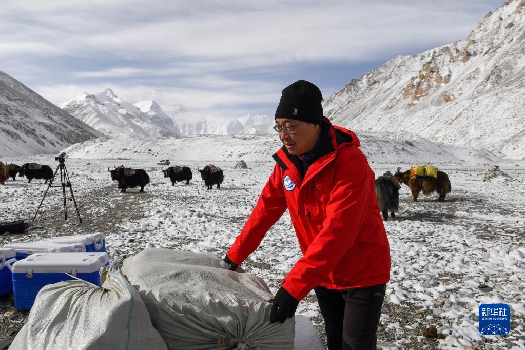 冰川與污染物科考小組負(fù)責(zé)人康世昌在檢查上山物資(5月1日攝)。新華社記者 姜帆 攝