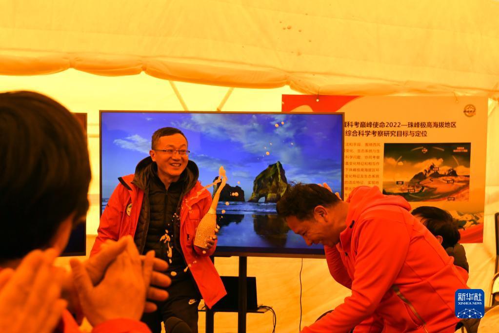 當(dāng)日凌晨3點,科考隊員從珠峰海拔8300米的突擊營地開始沖頂。他們在海拔8830米處,架設(shè)了世界海拔最高自動氣象站,并在8848.86米的巔峰,利用高精度雷達(dá)測量冰雪厚度。任務(wù)一個接一個順利完成,珠峰大本營“巔峰使命”總指揮會議室?guī)づ窭铮娮C這一盛舉的科學(xué)家和工作人員的掌聲、喝彩聲,一次比一次響亮。