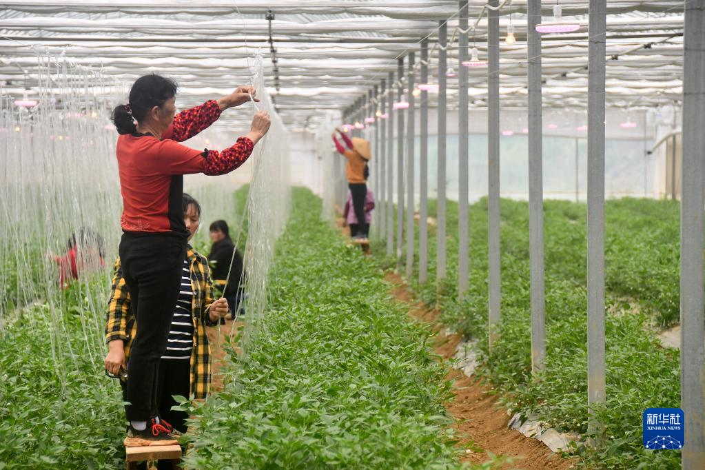在湖南省湘陰縣樟樹鎮(zhèn),椒農(nóng)對樟樹港辣椒進(jìn)行管護(hù)(4月13日攝)。新華社記者 周勉 攝