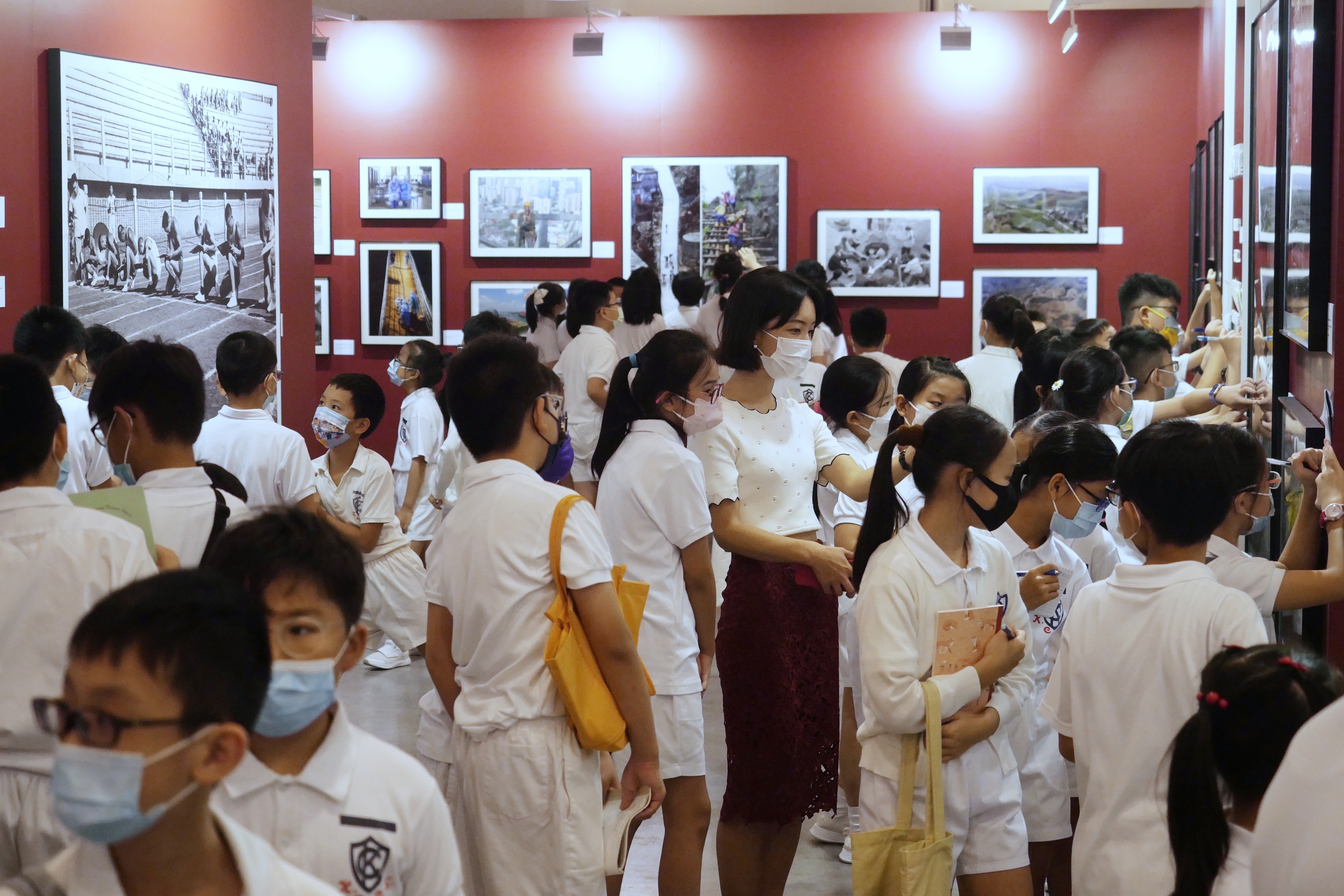 2021年10月11日,香港小學(xué)生在參觀《國家相冊》大型圖片典藏展。新華社記者 王申 攝