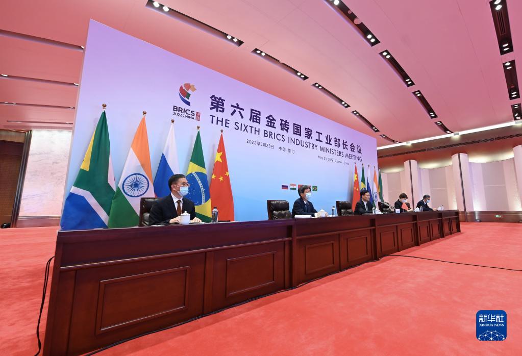 2022年5月23日,第六屆金磚國家工業(yè)部長會議在福建廈門以視頻會晤的形式舉行。新華社記者 林善傳 攝