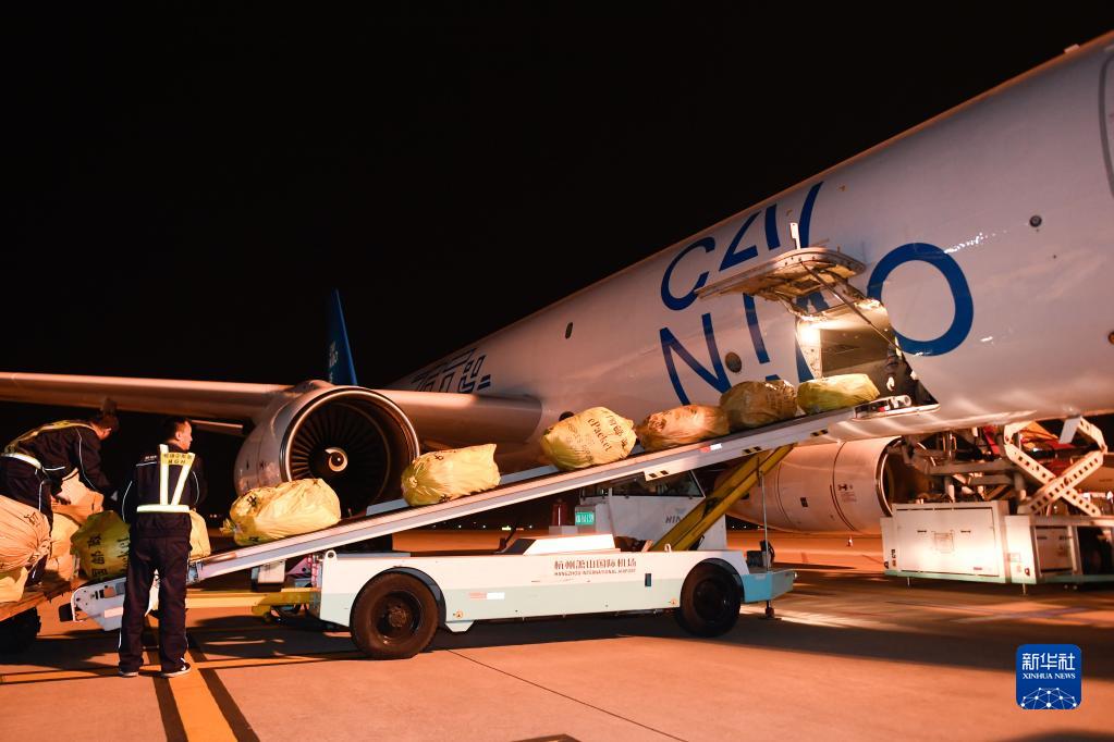 2019年10月30日凌晨,浙江杭州飛往俄羅斯首都莫斯科的首條直達(dá)電商貨運(yùn)航線“菜鳥號”從蕭山國際機(jī)場首航。新華社記者 黃宗治 攝