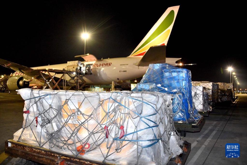 2020年4月14日,中國援助的抗疫物資抵達(dá)南非約翰內(nèi)斯堡奧坦博國際機(jī)場。新華社發(fā)(中國駐南非大使館供圖)