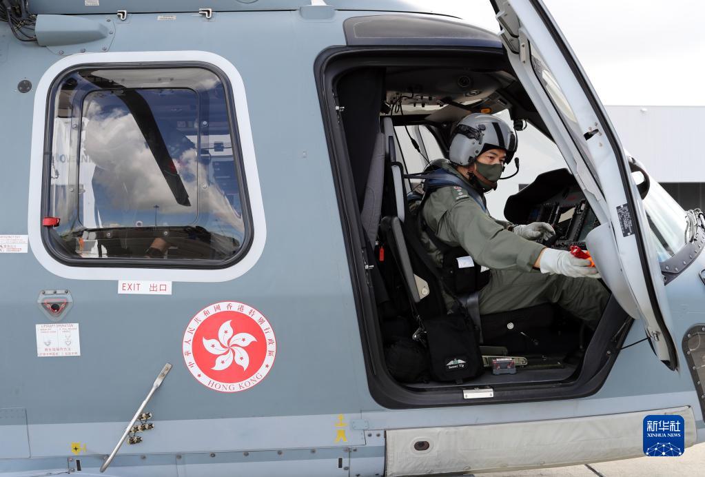 香港特區(qū)政府飛行服務(wù)隊(duì)領(lǐng)航機(jī)長葉偉雄準(zhǔn)備訓(xùn)練(6月23日攝)。新華社記者 李鋼 攝