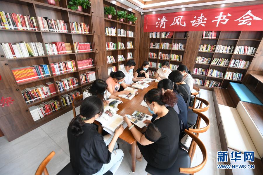 2020623日,河北省棗強縣紀委監(jiān)委組織部分單位黨員干部,在縣文化廣電和旅游局舉行清風讀書會。新華社記者 李曉果 攝