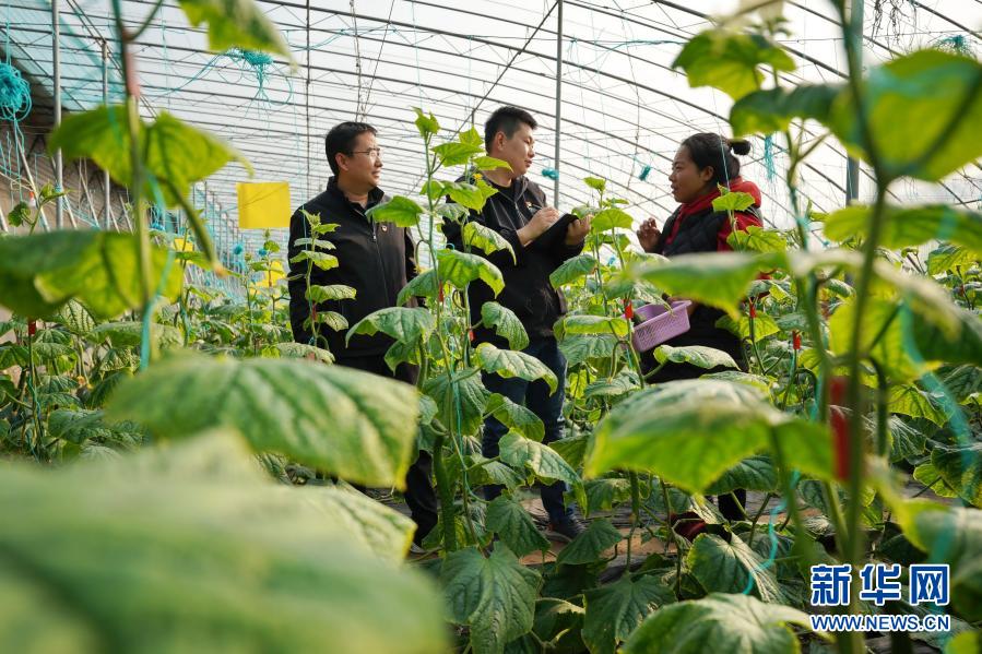 20201210日,河北省巨鹿縣紀委監(jiān)委工作人員(左一和左二)在巨鹿縣一個農(nóng)業(yè)園區(qū)的大棚向種植戶了解扶貧資金落實情況。 新華社記者 牟宇 攝