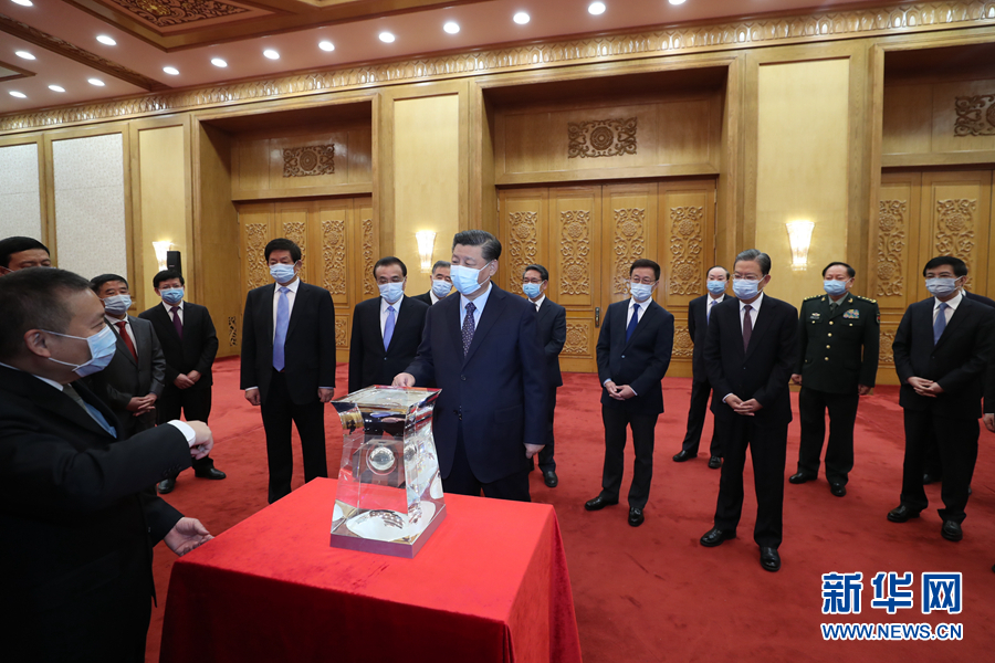 習(xí)近平在會見探月工程嫦娥五號任務(wù)參研參試人員代表并參觀月球樣品和探月工程成果展覽時強(qiáng)調(diào)