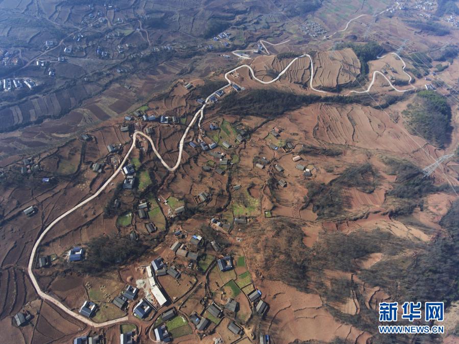 這是四川省涼山彝族自治州美姑縣九口鄉(xiāng)四峨吉村約6公里的道路硬化項(xiàng)目(2017年2月12日攝,無(wú)人機(jī)照片)。2015年8月,蔣富安由涼山州審計(jì)局派到美姑縣九口鄉(xiāng)四峨吉村任駐村第一書(shū)記,2016年8月22日因勞累猝死,年僅26歲。新華社記者 劉坤 攝