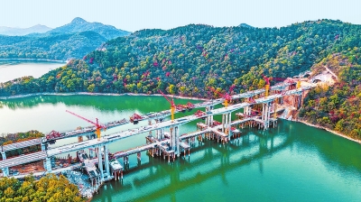 11月26日,位于駐馬店市確山縣的許信高速溱頭河大橋?qū)崿F(xiàn)雙幅合龍,標(biāo)志著年內(nèi)計劃通車的第5至9合同段全線貫通,向順利通車運營邁出關(guān)鍵一步。周鵬超 居暢 攝