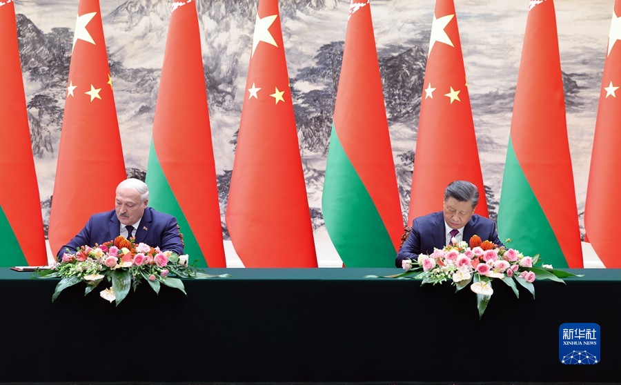會談后,兩國元首共同簽署《中華人民共和國和白俄羅斯共和國關(guān)于新時(shí)代進(jìn)一步發(fā)展兩國全天候全面戰(zhàn)略伙伴關(guān)系的聯(lián)合聲明》,并見證簽署經(jīng)貿(mào)、工業(yè)、農(nóng)業(yè)、海關(guān)、科技、衛(wèi)生、旅游、體育、地方等領(lǐng)域多項(xiàng)雙邊合作文件。