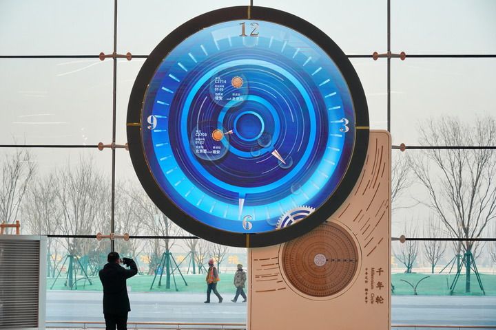 雄安站候車廳,一座“千年輪”吸引著往來旅客的目光。它的起始日期被設(shè)定為2017年4月1日——“雄安”第一次被公眾知曉的日子?!扒贻啞钡牡鬃?,鐫刻著8個(gè)金色大字——“千年之計(jì) 始于當(dāng)下”。齒輪不停地轉(zhuǎn)動(dòng),記錄下歷史前進(jìn)的軌跡。
