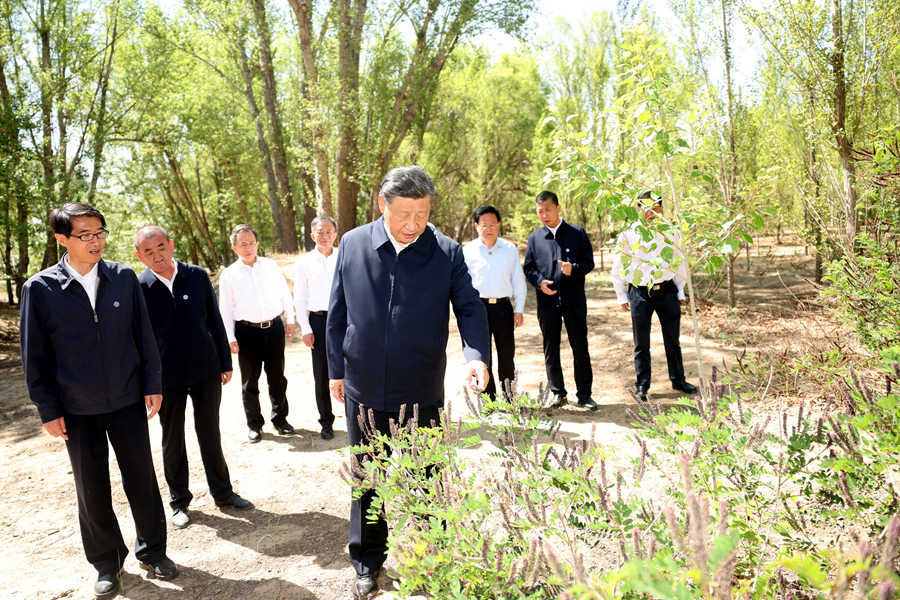 2023年6月5日至6日,中共中央總書(shū)記、國(guó)家主席、中央軍委主席習(xí)近平在內(nèi)蒙古巴彥淖爾考察,并主持召開(kāi)加強(qiáng)荒漠化綜合防治和推進(jìn)“三北”等重點(diǎn)生態(tài)工程建設(shè)座談會(huì)。這是5日下午,習(xí)近平在烏梁素??疾?。新華社記者 謝環(huán)馳 攝
